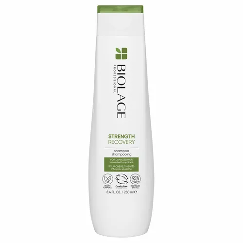 Păr deteriorat, fără strălucire și viață? Gama Biolage Strength Recovery, îmbogățită cu squalan vegan, regenerează și subliniază naturalețea părului la privire și atingere. Șamponul Strength Recovery este ideal pentru părul deteriorat de vopsire și coafare. După utilizare, părul rămâne hidratat, strălucitor și moale la atingere. În plus, nu îngreunează părul, facilitează pieptănarea și condiționarea ulterioară.