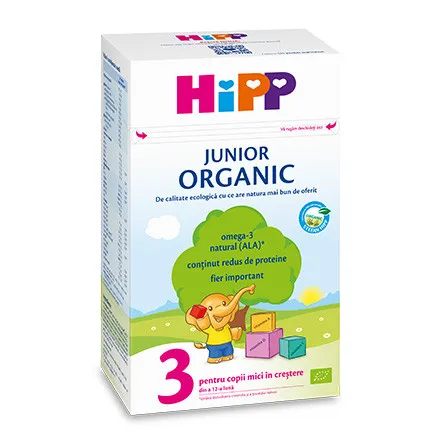 Formula HIPP 3 Junior Organic, special concepută pentru copii de la 1 an, oferă nutrienți esențiali pentru o dezvoltare sănătoasă. Cu acizi grași Omega 3, vitaminele C și D și calciu, susține creșterea optimă și imunitatea. Alege calitatea organică! Descriere completă