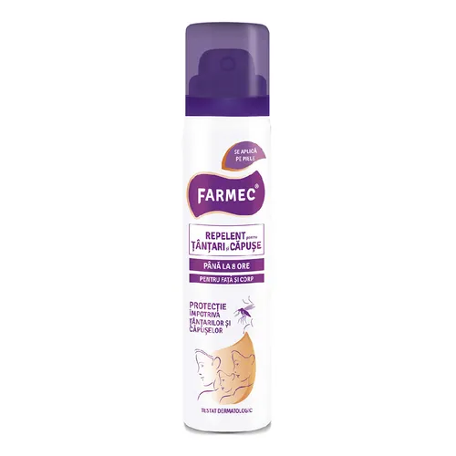 Farmec repelent pentru tantari si insecte ofera protectie impotriva tantarilor si insectelor prin ingredientul special continut, care actioneaza ca un scut impotriva insectelor, tinandu-le la dist...